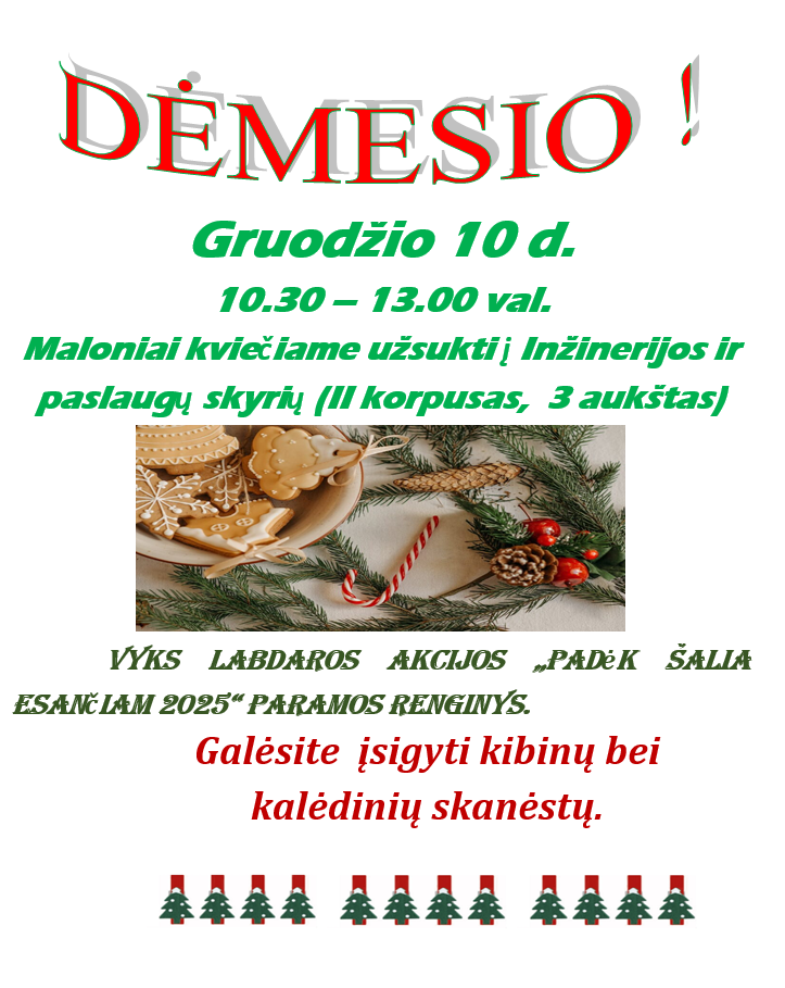 Maloniai kviečiame užsukti į Inžinerijos ir paslaugų skyrių (II korpusas, 3 aukštas)