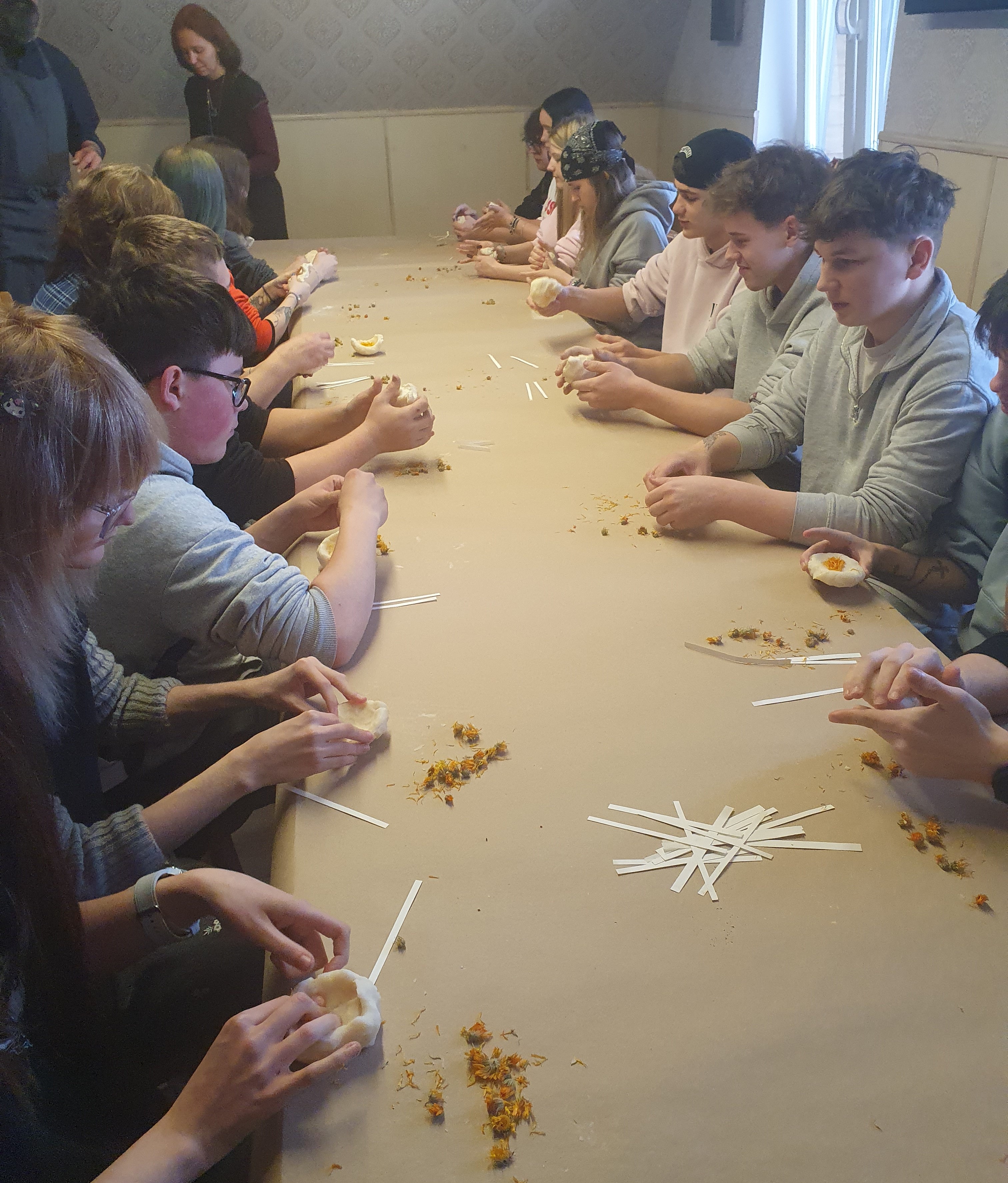 Kovo 12 d. grupė 9-11 kl. mokinių, lydimi socialinių pedagogių O. Bernatavičienės ir J. Andriuškevičienės, lankėsi Trakuose. Pirmoji edukacija vyko Trakų krašto tradicinių amatų centre. Užsiėmimo metu susipažinome su muilo gamybos medžiagomis, muilo gamybos istorija, pamatėme distiliacijos procesą. Namų gamybos muilas – pats natūraliausias produktas, nes patys galėjome kontroliuoti jo sudėtį bei kvapą, pasirinkdami eterinius aliejus. Tad pačių pagamintas muilas su pasirinktais kvapais tapo puikia dovana sau.