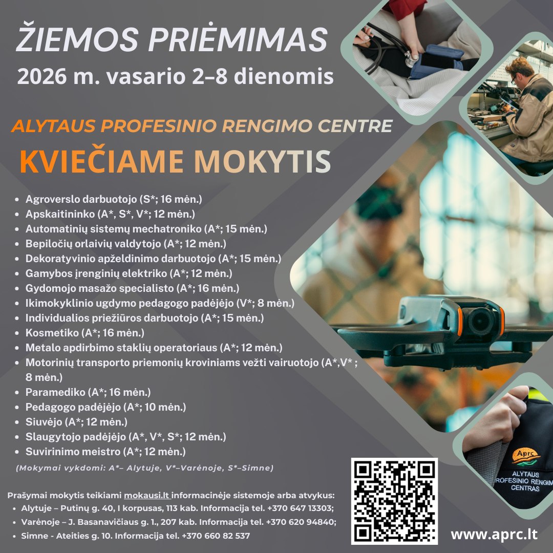 KVIEČIAME MOKYTIS ALYTAUS PROFESINIO RENGIMO CENTRE!