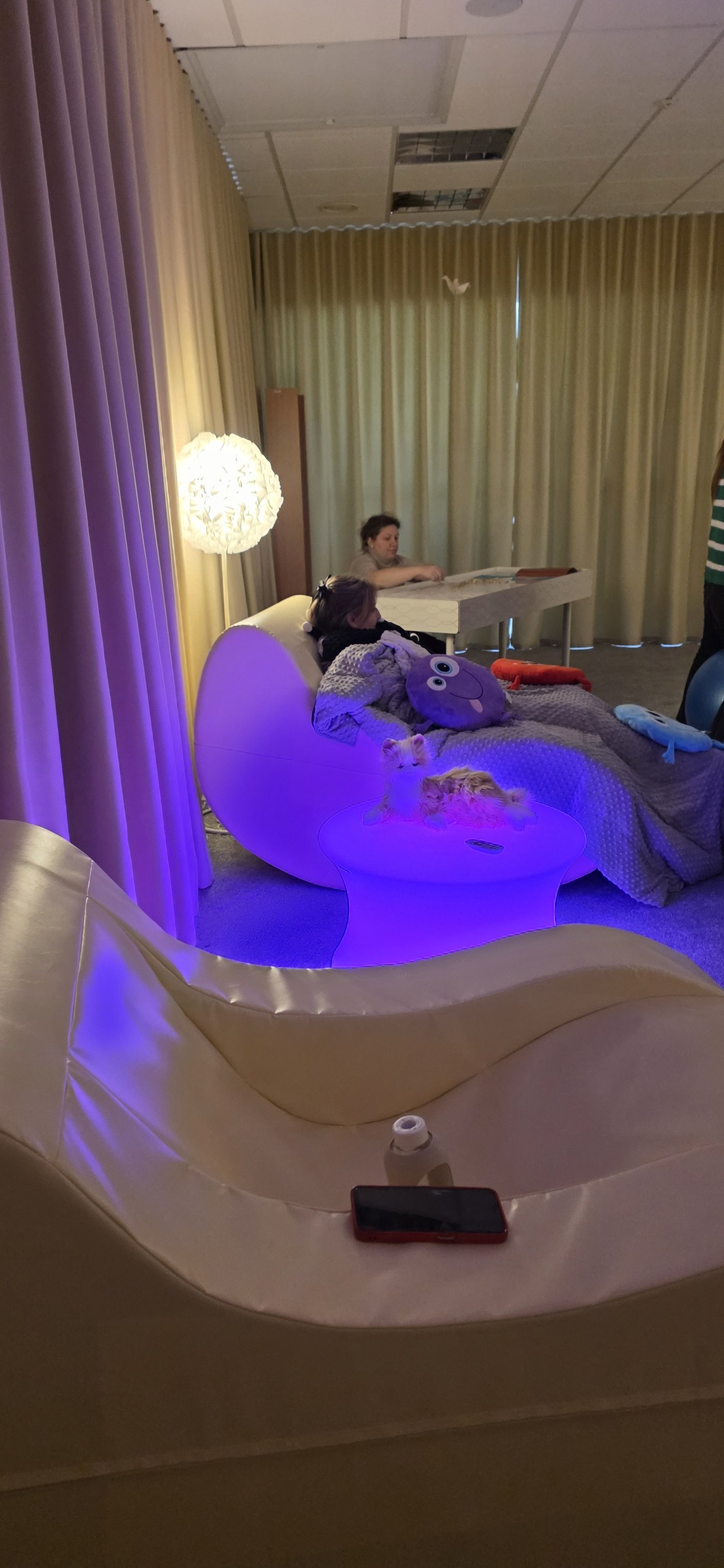 Mokinėms buvo įdomu išbandyti pasunkintas antklodes ir apykaklę, kurios gali padėti nusiraminti, esant įtampai, stresui ar pykčio priepuoliams. Daugeliui dalyvių labai patiko akustinės kėdės su integruota garso sistema ir apšvietimu, kuriose mokinės galėjo atsipalaiduoti, ramiai klausyti relaksacinės muzikos. Sužinojo, kad akustinių kėdžių jauki ir uždara erdvė suteikia saugumo ir privatumo pojūtį bei sugeria garsą, todėl yra ideali vieta vaikams atsiriboti nuo aplinkos, susikaupti, pailsėti, nusiraminti, atsipalaiduoti.