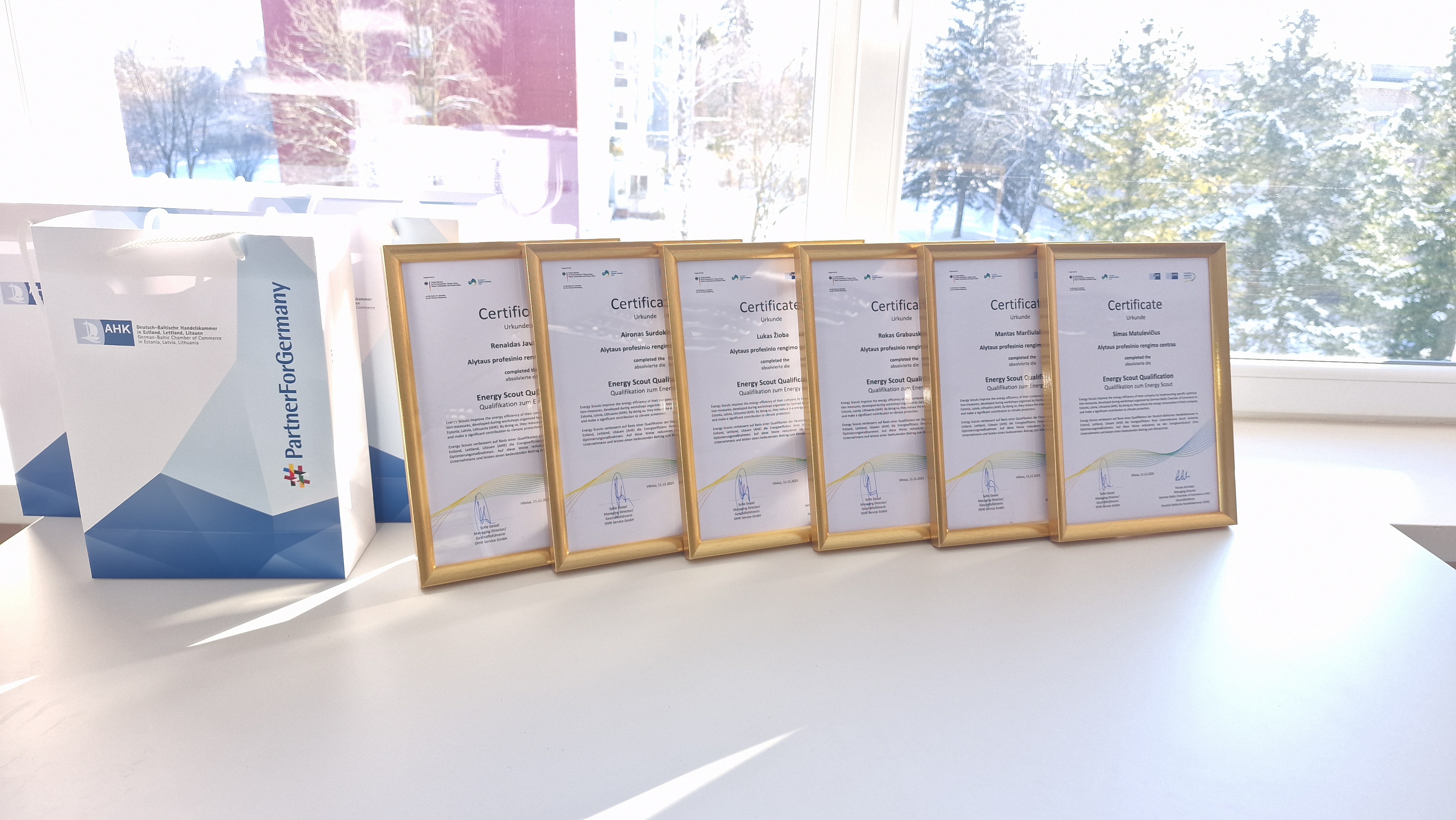 Už sėkmingai atliktą tiriamąją veiklą komandai įteikti tarptautinės iniciatyvos „Energy Scouts“ sertifikatai.