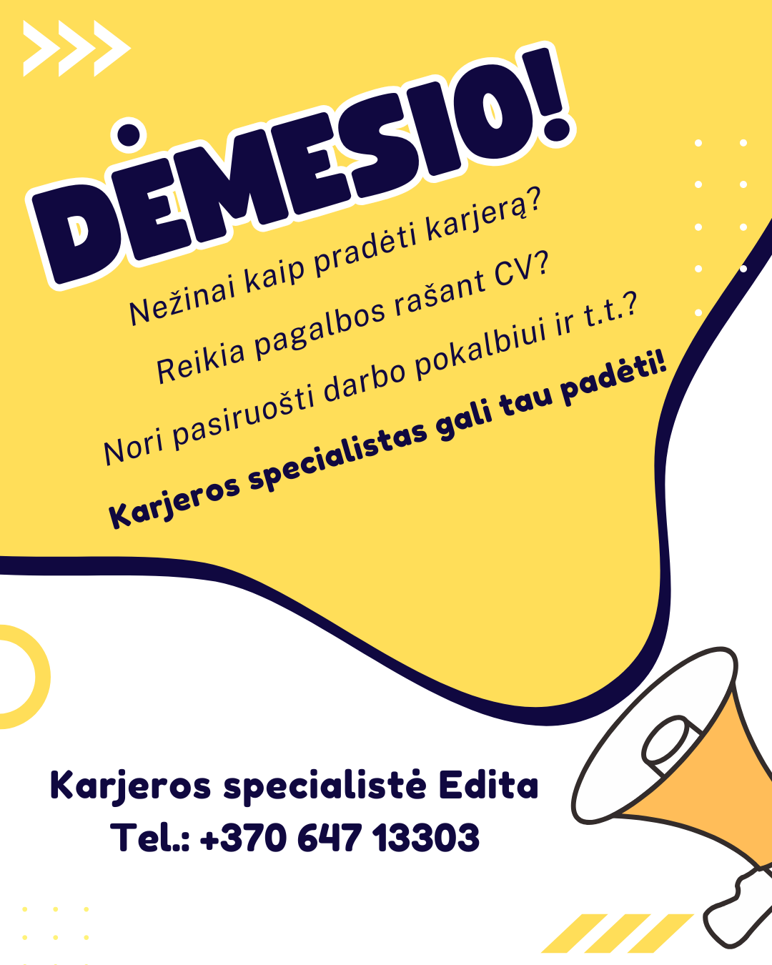 Karjeros paslaugas mokykloje teikia karjeros specialistė Edita Smaidžiūnienė.